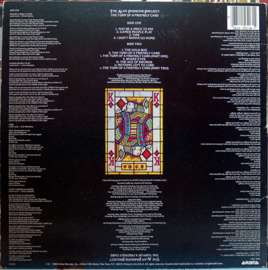 The Alan Parsons Project - The Turn Of A Friendly Card (LP, Album, Mon) (Very Good (VG))