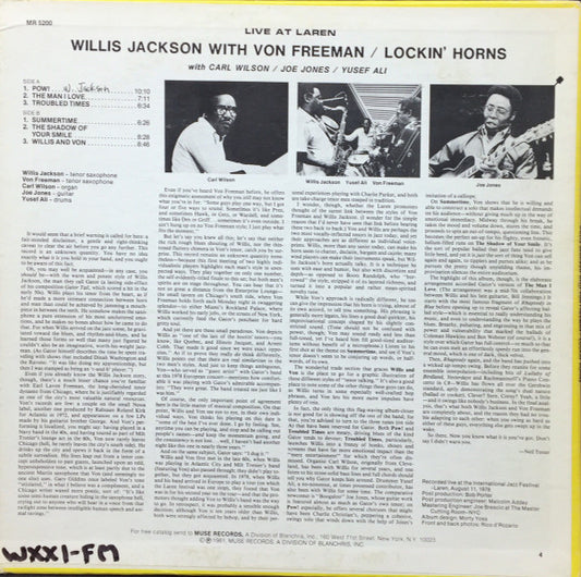 Willis Jackson, Von Freeman - Lockin' Horns - Willis & Von Live At Laren (LP, Album, Promo) (Very Good (VG))